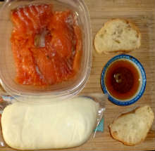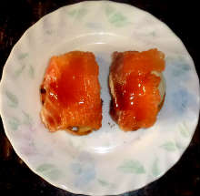 Очень необычное сочетание соленой (копченой) красной рыбы и мёда. Готовятся за 10 минут. Очень популярны в Барселоне (см. историю).