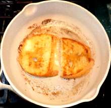 Выложить ломтики хлеба в разогретую сковороду со сливочным маслом.