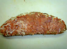 В основе блюда - соленые лососиные брюшки, которые остаются от разделки тушки. Они слишком жирные, чтобы употреблять их без обработки, но, будучи смолотыми в блендере, они становятся ароматной и вкусной намазкой, которую можно широко использовать.