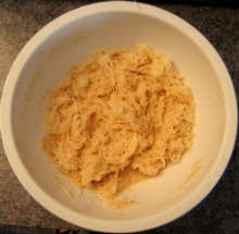Отжать картофель, добавить яйцо, соду, муку, перемешать.