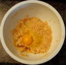 Отжать картофель, добавить яйцо, соду, муку, перемешать.