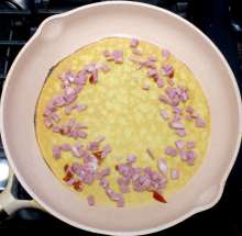 Блинчики На разогретую сковороду выкладывается блинчик, на него последовательно кладутся мелко нарезанная ветчина, тёртый сыр и сырое яйцо. Когда яйцо начнёт схватываться, края блина заворачиваются конвертом и блюдо доводится до готовности.