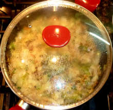 Накрыть капусту крышкой, убавить огонь до слабого.