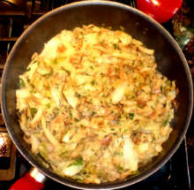 Любители могут взять половину свежей капусты и половину квашеной. Если квашеная капуста слишком кислая - промыть её.