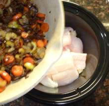 Сухие и свежие грибы, помидоры. | Картофель, рыбное филе, поджаренные овощи, сухие и свежие грибы помещаются в горшок медленноварки (или порционные горшочки), заливаются рыбным бульоном и томятся до готовности картофеля. Незадолго до окончания варки добавляются свежие помидоры. Готовый суп заправляется чесноком и зеленью. |