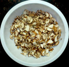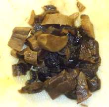 Остывшие варёные грибы нарезать небольшими кусочками.