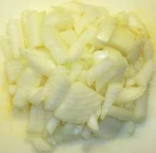 Лук нарезать прямоуголиниками.