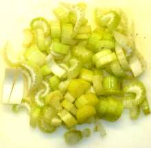 Стебель сельдерея нарезать поперёк брусочками.