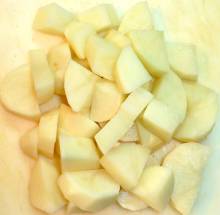 Выложить картофель в кипящий бульон. Варить 7 минут.