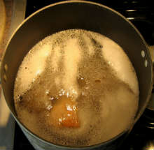 В большинстве рецептов советуется рассол процедить, слить в кастрюльку, довести до кипения, снять пену и кипятить около пяти минут. Я использую рассол от консервированных огурцов и смысла в этих манипуляциях не вижу. С рассолом будьте очень осторожны - пропорция зависит от качества рассола (он может быть очень соленым или очень кислым), поэтому нужно добавлять его по столовой ложке и снимать пробу. Вкус должен быть солоноватым и с кислинкой. Интенсивность зависит от ваших предпочтений.