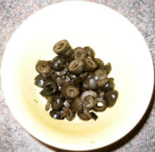 Нарезать маслины без косточек колечками. Приготовить каперсы.