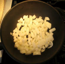 Нарезать кубиками лук, поджарить на масле до золотистой корочки.