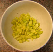 Пока помидоры тушатся, нарезать стебель сельдерея и зелень.