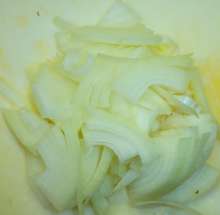 Лук нарезать четвертькольцами.