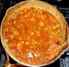 | Репа, помидор, фасоль консервированная, болгарский перец, томатная паста. | Варится бульон из утиных костей, процеживается, в него добавляется картофель, затем – нашинкованная капуста. Щи варятся почти до готовности картофеля, добавляется овощная заправка (пассерованные лук, морковь, стебель сельдерея, сладкий перец с томатом). Суп варится несколько минут, добавляется рубленная зелень, варится до изменения цвета, затем добавляется откинутая на сито консервированная фасоль. Суп доводится до кипения, заправляется рубленным чесноком, выправляется на соль и перец и снимается с огня. Готовые щи настаиваются, при подаче заправляются свежей зеленью и (по желанию) сметаной. |
