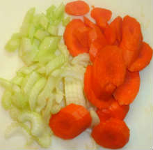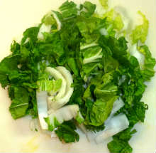 В азиатской кулинарной традиции овощи как правило нарезают наискосок. Суп в Китае едят маленькими фарфоровыми ложками и палочками, поэтому овощи мелко не режут.