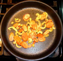 Поджарить овощи на сильном огне до золотистой корочки (минут 5).