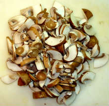 Нарезать кубиками или квадратиками, в зависимости от толщины кусков.