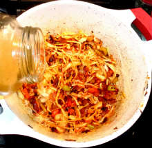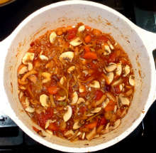 Если жидкости недостаточно для покрытия всех ингредиентов - долить бульоном.