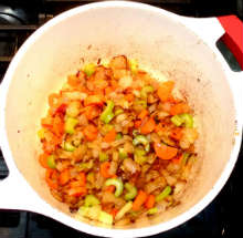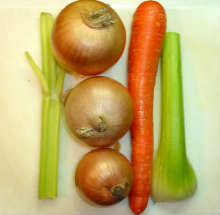 Морковь нарезать шайбами, стебель сельдерея - брусочками.