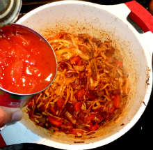 Добавить консервированные помидоры (у меня - кусочками), перемешать.