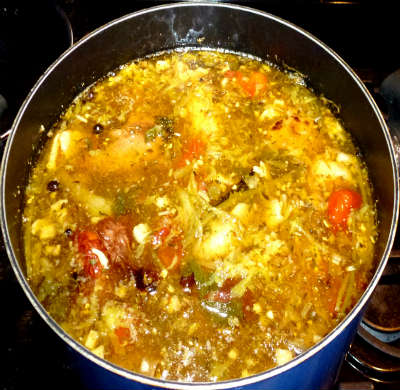 Бульон лучше сварить заранее потому, что опохмелка, как правило, происходит в первой половине дня, а бульон варится долго.Конечно, можно использовать любой бульон, а не только из костей. Просто я старался соблюсти аутентичность рецепта.