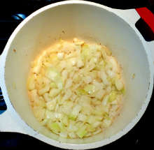 Поджарить лук до легкой корочки.