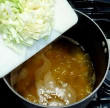 Когда бульон закипит – выложить в него капусту.