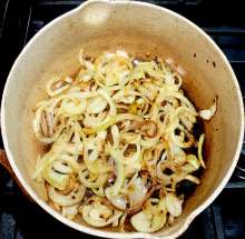 Потушить лук несколько минут на малом огне, добавить майоран, перец.
