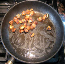 Выложить грибы на раскаленную сковороду со сливочным маслом, обжарить до румяной корочки.