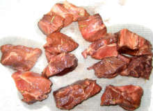 Мясо нарезать порционными кусочками, как для гуляша (где-то 3х3 см.)