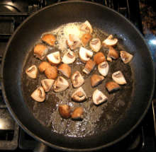 Выложить грибы на раскаленную сковороду со сливочным маслом, обжарить до румяной корочки.