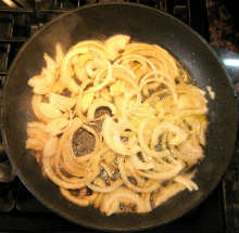 На оставшемся жире обжарить лук до золотистой корочки.