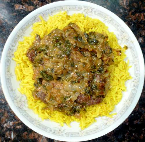 Сванская соль, кинза. Мясо, нарезанное брусочками, обжаривается в растительном масле, добавляется лук, блюдо тушится без добавления воды до мягкости лука, добавляется зелень, сванская соль, чеснок, блюдо тушится до изменения цвета зелени. Подается с рисом, отваренным в бульоне с имеретинским шафраном или куркумой.