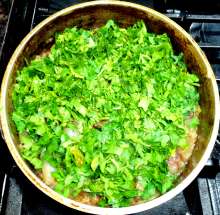 Выложить зелень в сковороду.