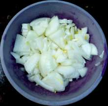 Тем временем лук нарезать чесвертькольцами.