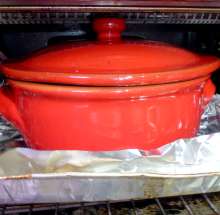Накрыть горшочек крышкой (или фольгой), поставить в духовку, нагретую до 180 С.