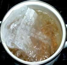 В это время приготовить гречку. У меня - гречка быстрого приготовления. Если её нет - обычная гречка должна тушиться вместе с мясом (см. выше).