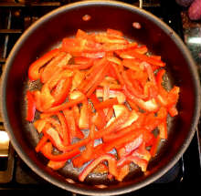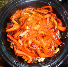 Выложить перец поверх грибов.