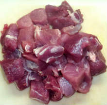 Если мясо заморожено - разморозить. Нарезать кусками, как для шашлыка или жаркого.