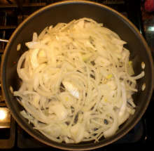 Нарезать лук полукольцами.