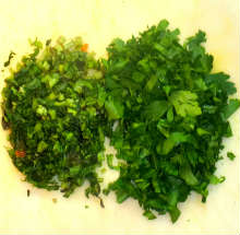 Подавать вместе с соусом. При подаче заправить зеленым луком и свежим чесноком.