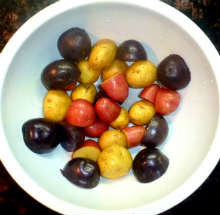 У меня - молодой разноцветный картофель, но это просто так случилось. Если у вас обычная картошка - нарежте её крупными кусками.