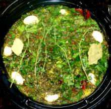 Исключить операции обжарки. Все ингредиенты сразу сложить в горшечек медленноварки и следовать рецепту.