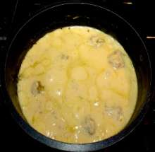 | Гречка | Готовится фарш из куриного мяса, гречки, отваренной до полуготовности, сырого лука и специй. Из фарша формируются тефтели и тушатся в сметанном соусе (сметана + морковь + сельдерей + лук + мука + зелень). |