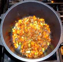 Если жареного лука нет - пожарить его вместе с остальными овощами (см. ниже).