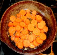 В толстостенный казанок выложить кружки моркови и кусочки свеклы. Поверх уложить обжаренные котлетки.