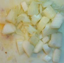 Половину лука поджарить на растительном масле до золотистости. Остудить.