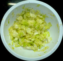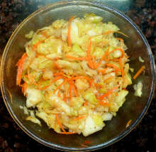 Перемешать так, чтобы все капустные листья были смазаны заправкой.