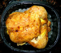 | Жареная курица | Морковь, картофель, яйца отвариваются. Все ингредиенты нарезаются мелкими кубиками, смешиваются, добавляется зеленый горошек, салат заправляется майонезом, перцем и тщательно перемешивается. |